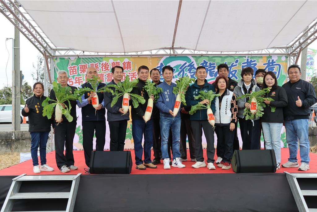 後龍鎮公所年度盛事蘿蔔節今日於秀水里農地登場,今年主題定為「趣後龍・拔蘿蔔」,吸引眾多親子家庭前來同樂。縣長鍾東錦特別到場支持在地特色農業,並宣布全縣65歲以上長輩的敬老愛心卡現已可於農會點數消費,鼓勵