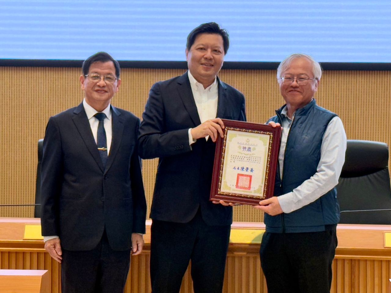 【記者曾佳俊/新北報導】為強化到院前緊急醫療救護體系,新北市政府 今(17)日上午於災害應變中心舉行「115年度醫療指導顧問及醫療指導醫師」聘書頒發典禮,由副市長朱惕之代表市長主持,感謝醫師長期投入救護專業指導與制度精進,現場氣氛隆重溫馨。