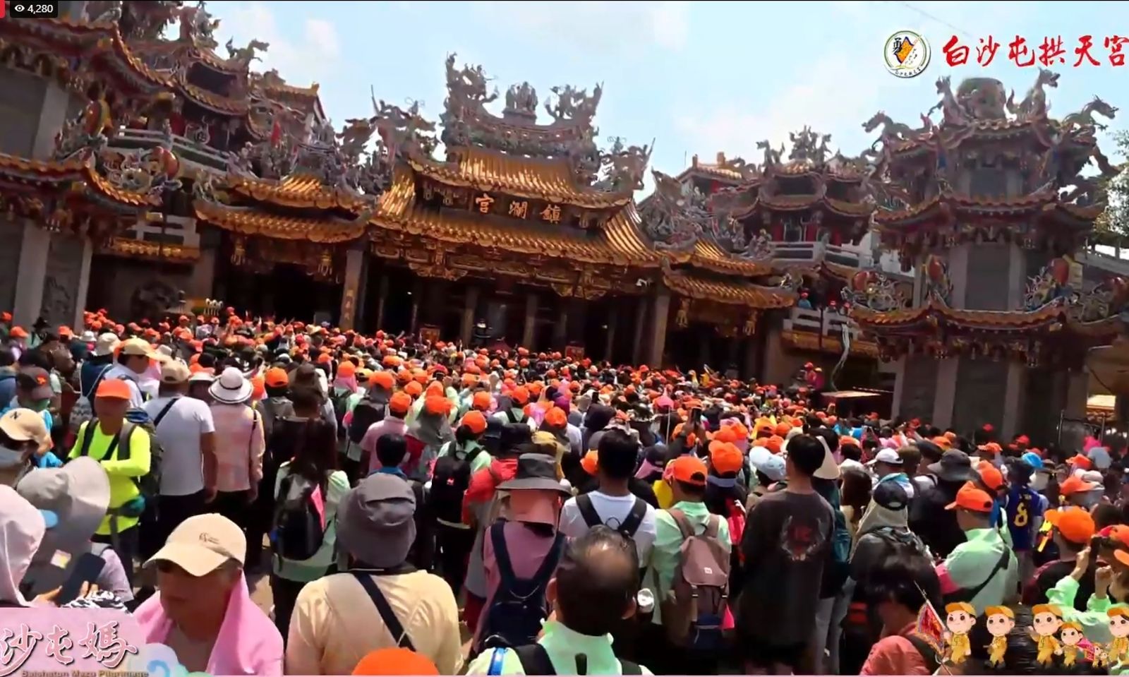 白沙屯拱天宮天上聖母往北港朝天宮進香今啟程,今年新增的值年爐主媽祖與白沙屯媽祖、山邊媽祖同轎往北港朝天宮進行8天7夜進香,而今年報名進香的香燈腳突破46萬大關,人數為歷年之冠。今啟程首日,香燈腳幾乎把南下縱貫線幾爆,整條縱貫線都是戴著拱天宮橘色宮帽的香燈腳,密密麻麻綿延數公里,場面相當壯觀盛大!白沙