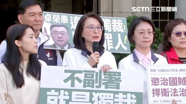 行政院長卓榮泰以「不副署」強硬回擊藍白再惡修的《財劃法》,讓藍白氣炸,今(23)日在國民黨立委翁曉玲領軍下,到監察院陳情要求彈劾卓榮泰。國民黨立委王鴻薇還開嗆,如果能夠容許卓榮泰如此越權濫權,「那以後包含立法院可以廢掉了,總統府也可以廢掉了」。民眾黨立委麥玉珍則稱,行政首長選擇性不副署,嚴重迫害五權分立,「也侵奪大法官違憲審查權!」