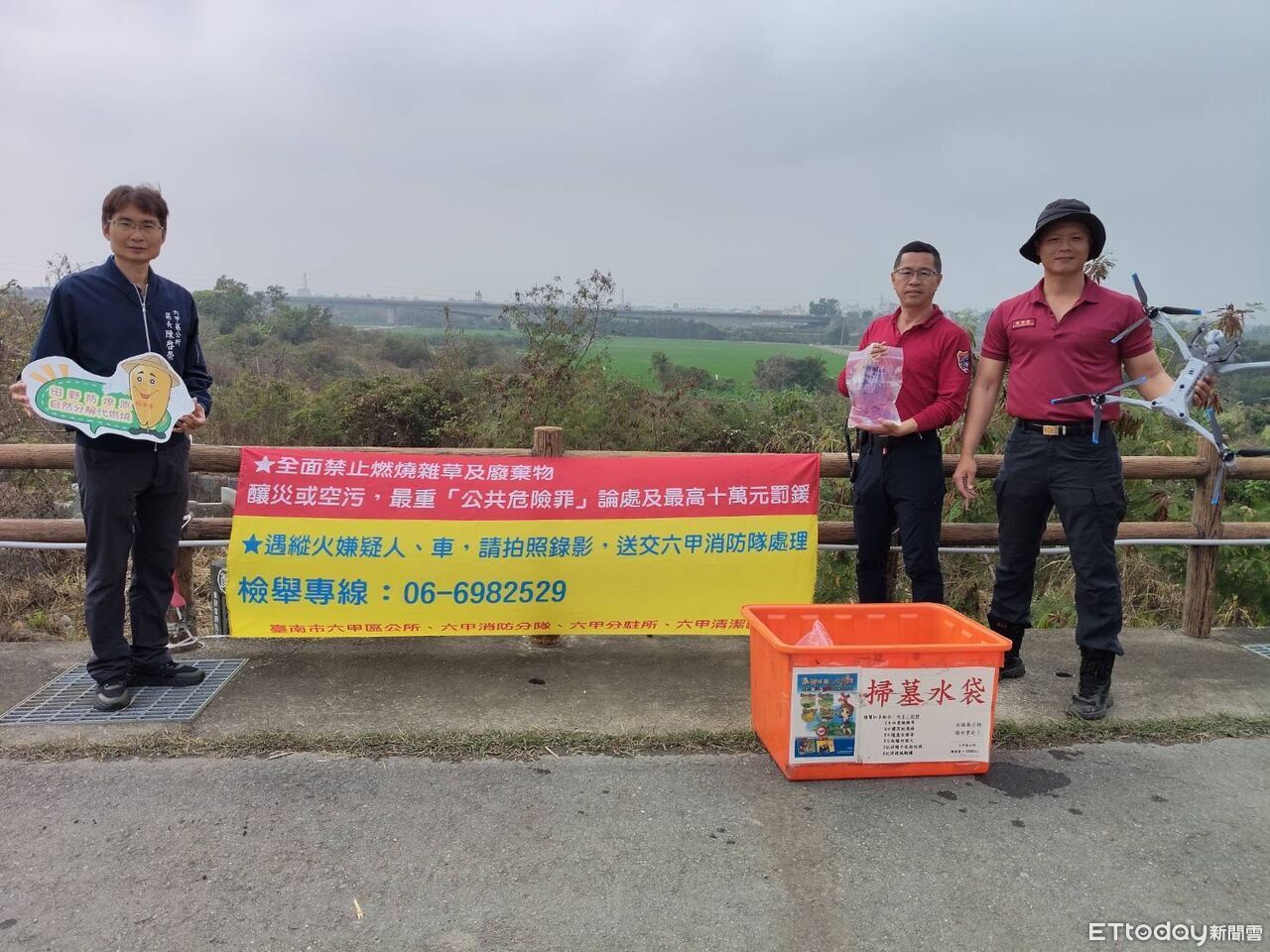清明節將至,掃墓祭祖活動逐漸增加,為防範公墓火災發生,台南市消防局第二大隊六甲消防分隊5日下午會同六甲區公所,前往六甲區第一公墓進行防火宣導與實地勘察,並運用無人機科技進行空中巡查與蒐證,強化公墓火災預防工作,期望透過科技輔助與宣導並行,有效降低清明期間火災發生風險。