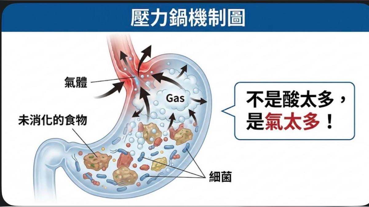 胃食道逆流的狀況不一定是胃酸造成,有醫師發現患者一直以來以制酸劑治療胃酸逆流,但狀況一直未改善,了解狀況後發現,患者飯後沒有灼熱感,而是悶脹、打嗝,患者是「氣太多」卡住了,而不是「酸太多」,把制酸劑停掉之後,狀況反而獲得改善。