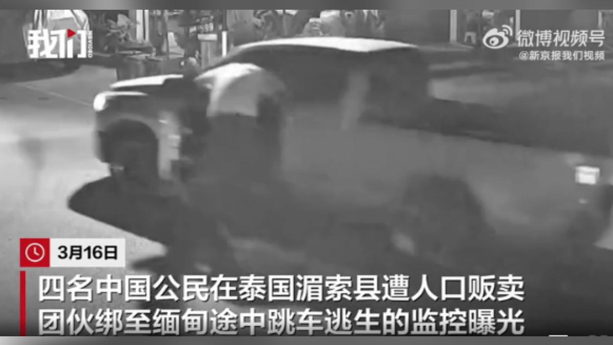 4名中國人在泰國達府湄索縣遭人口販賣集團誘騙,被強塞進皮卡車準備運往緬甸,途中一人驚險跳車逃脫,還成功拉開車門救出其餘3人!司機見狀棄車逃逸,4人隨即報警並在中國大使館協助下安全返國。