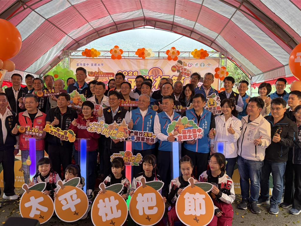 台中市太平區公所與太平區農會5日在太平區大湖桶枇杷園舉辦「2026太平枇杷節活動記者會」,宣告太平枇杷正式上市;太平區農會總幹事余文欽指出,揮別去年因天災減產4成的陰霾,今年授粉與結果狀況相當理想,預期產量