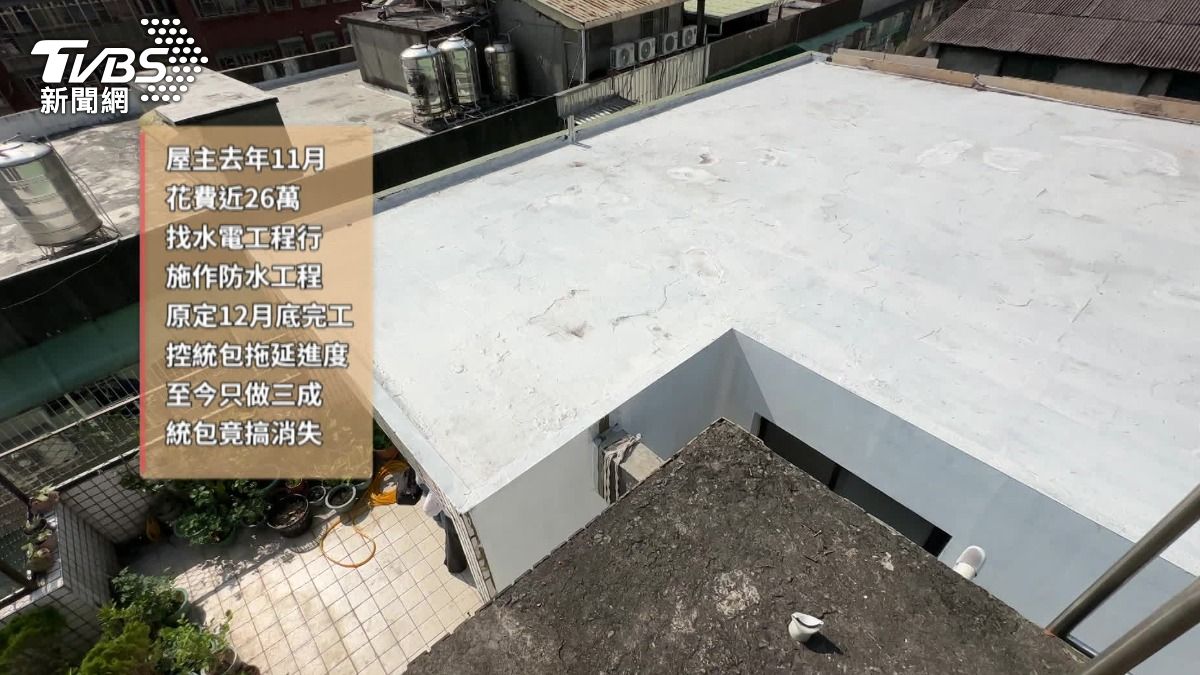 新北市中和區一名林姓男子去年花費近26萬元,委託水電工程行施作住家防水工程,原定去年12月底完工,卻拖延至今年4月中旬僅完成三成進度,統包商更失聯消失。林先生指控遭遇「裝潢蟑螂」,統包與工班聯手詐騙,已報警提告。