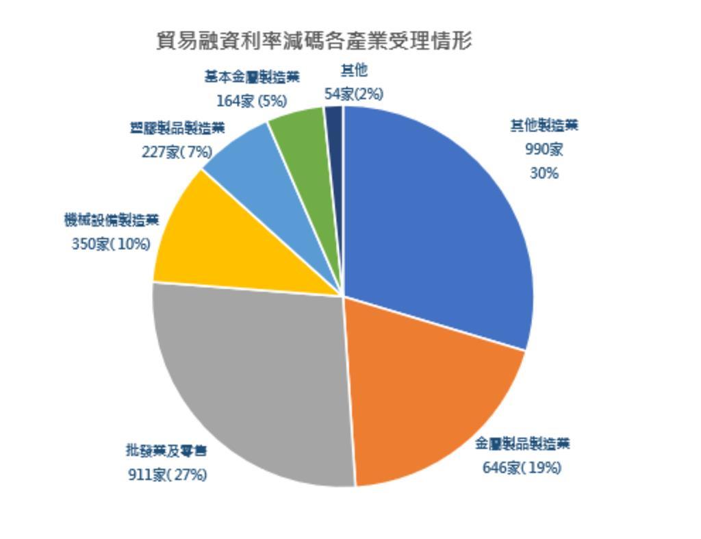 川普對等關稅衝擊出口廠商,財政部編列140億元協助廠商因應金融困難,提供「貿易融資利息減碼」及「輸出保險費用減免」2項措施,迄今實行逾四個月時間,統計顯示,申請業者以中小企業家占比87.88%最多,申請金額亦