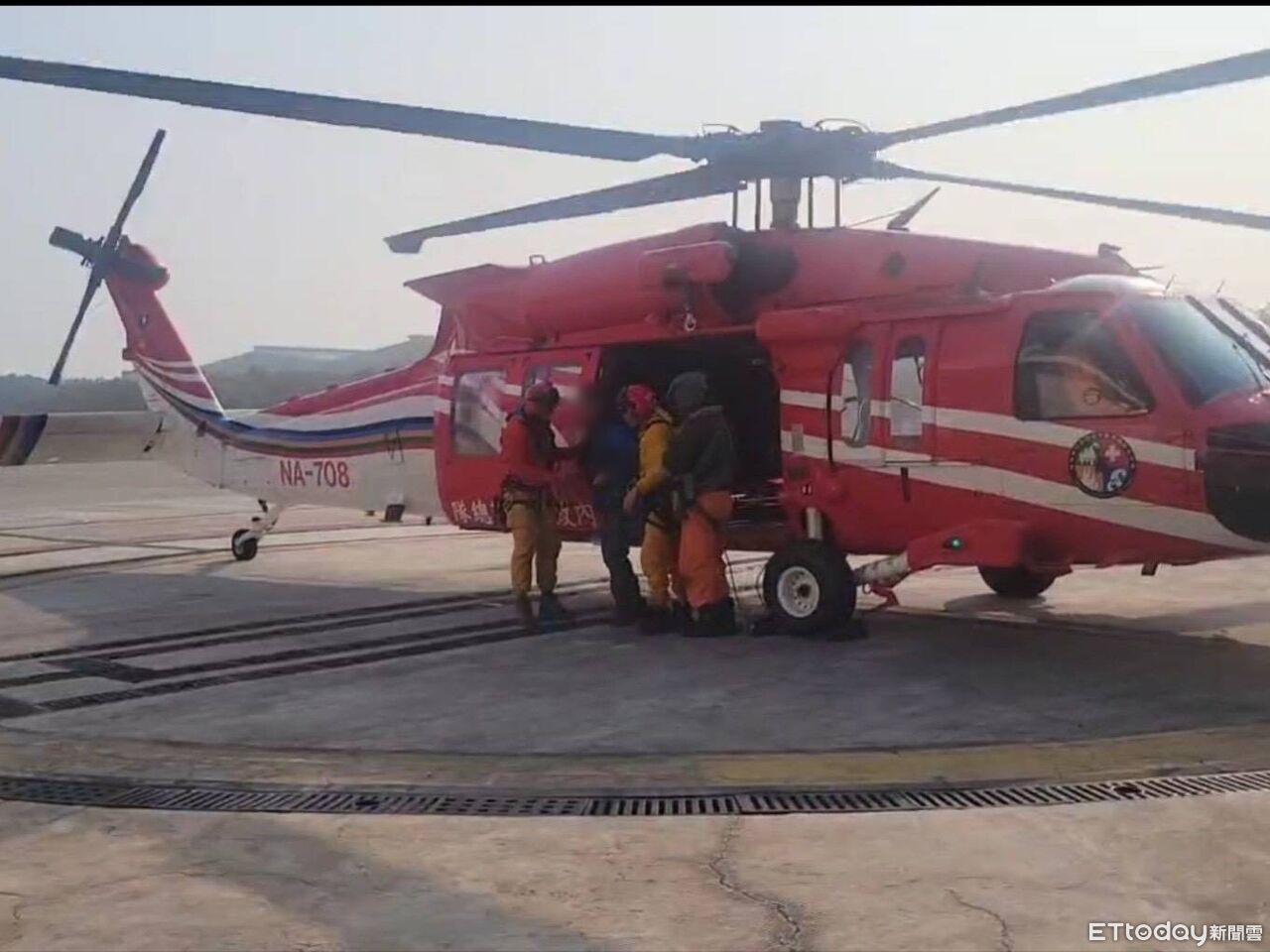 空中勤務總隊台中清泉崗駐地昨(22日)晚間接獲通報,指稱和平區南湖山屋有一名25歲林姓男子因不慎失足墜落導致全身多處擦傷,且脊椎、膝蓋劇痛無法行走,只好對外求援。空勤總隊今(23日)清晨6時57分出動UH-60M黑鷹直升機,並於7時24分抵達目標區域,確認周邊狀況後落地,由特搜隊員評估林男傷勢,並將其攙扶上機,於8時2分返回落地,後送傷患下機後由救護車轉送醫院治療。