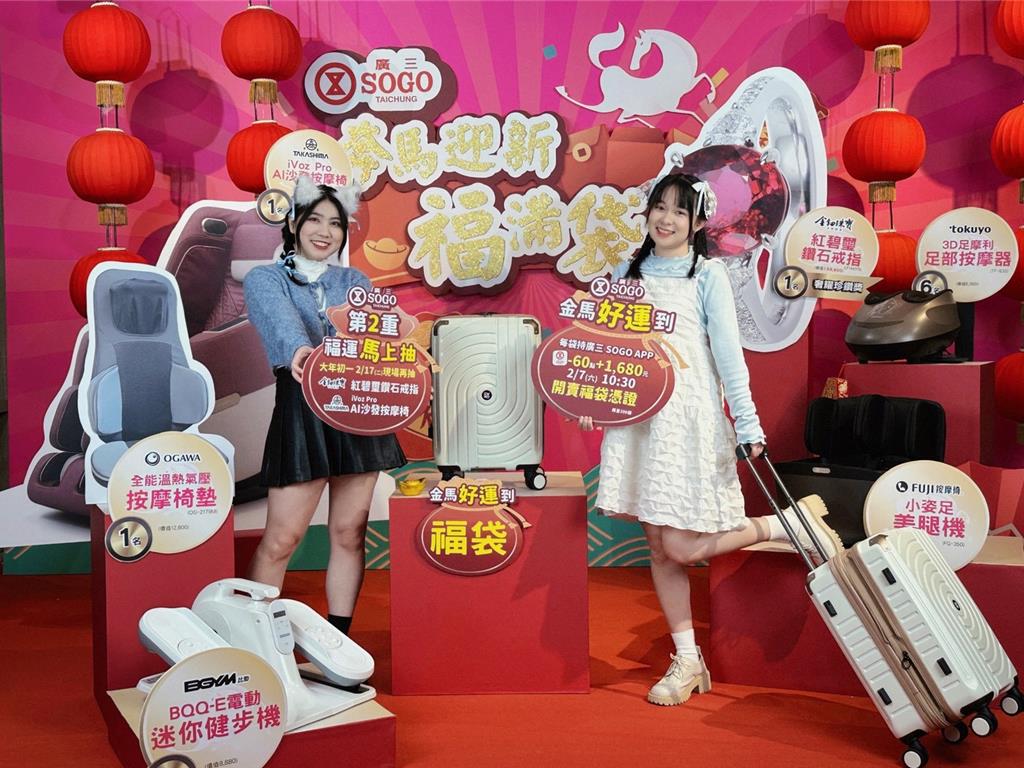 迎接2026嶄新一年,台中廣三SOGO以滿滿誠意與好運迎賓,推出馬年限定福袋企劃「奔馬迎新.福滿袋」,主打超高CP值與夢幻大獎,新春開運一次到位。福袋憑證將於2月7日上午10點30分準時開賣,限量300份,每袋售價1,680元,預期再掀年節搶購熱潮。 「奔馬迎新.福滿袋」每組皆包含一只20吋多功能行...