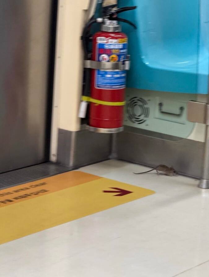 台北市大安區驚傳今年首例漢他病毒死亡病例,立刻引發關注。有網友在社群媒體上PO出照片,表示上週就已經在北捷車廂看過老鼠出沒。原PO昨(4)日在Threads上發文,貼出一隻老鼠在車廂內門口附近的照片。他表示,該張照片是上個月23日晚上9點左右拍下,當時是乘坐北捷新店線,路段大概是南京復興站到松江南京站中間。