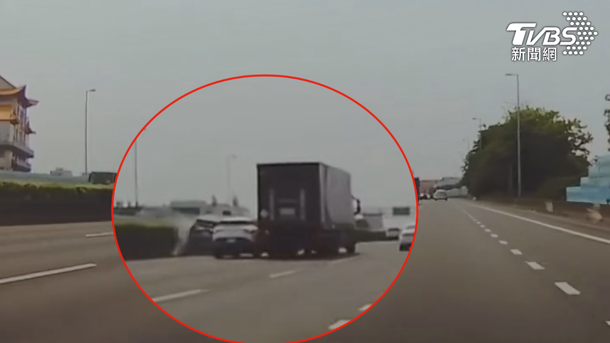 國道一號南向彰化路段18日發生驚險連環車禍!大貨車疑因前方小客車突然切入,變換車道時先擠撞白色轎車,再波及內側休旅車,導致休旅車衝撞分隔島,所幸三車駕駛均無受傷,肇責仍待釐清。