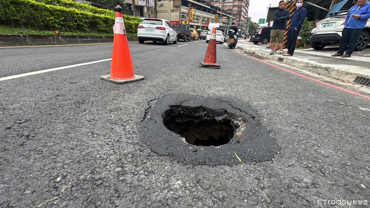 基隆市安樂區基金三路今(25日)上午驚傳路面塌陷,出現直徑、深度均逾1公尺的「天坑」,往基隆方向一線車道緊急封閉,所幸未釀人車受困。議員吳驊珈指出,初判不排除地下管線或排水設施問題,已要求相關單位儘速釐清原因並先行回填,確保清明連假前交通安全。