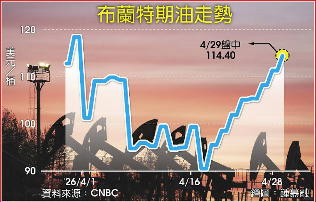 伊朗近日提出「先重啟荷姆茲海峽與結束戰事,後續再進行核談判」的提案,但美國總統川普感到不滿意、傾向不接受此方案,這使得市場對美伊衝突盡快落幕的盼望降溫。 受荷姆茲解除封鎖遙遙無期影響,西德州原油6月期貨價28日盤中大漲逾4%至每桶100.82美元,重返100美元大關。布蘭特6月期油上漲3.63%至每...