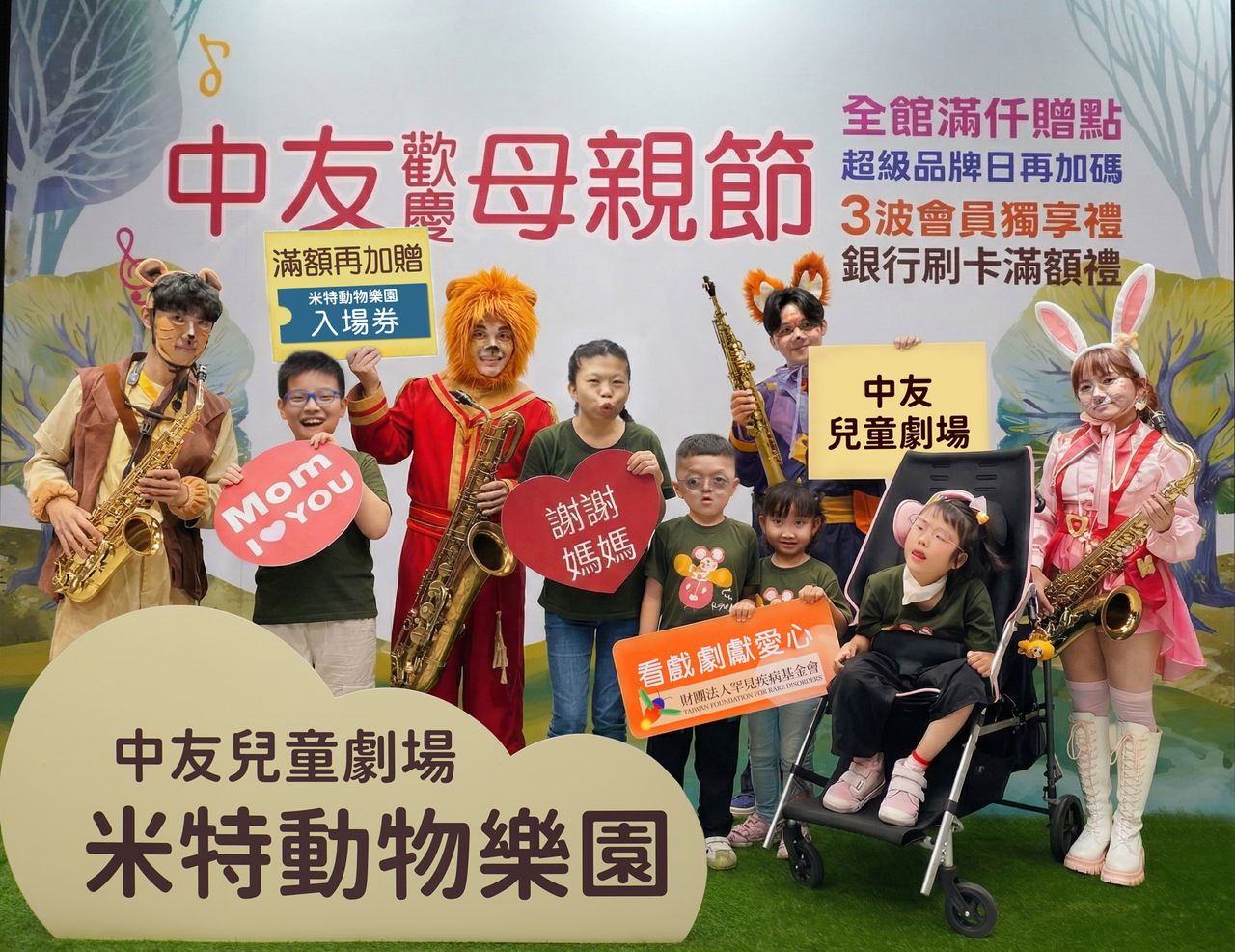【記者鮮明/台中報導】漢神洲際購物廣場將於10日開幕,台中各家百貨公司嚴陣以待,中友百貨在今年母親節檔期除推出全館滿千送百等活動外,還與入選「台灣TOP演藝團隊」的米特動物樂園,推出全新劇碼「薩克歷險記 森林動物派對」親子音樂劇,活動期間當日累積消費滿3千元即可免費兌換演出票券一張,還將售票收入10%捐贈財團法人罕見疾病基金會,並邀請30位病童入場觀劇。