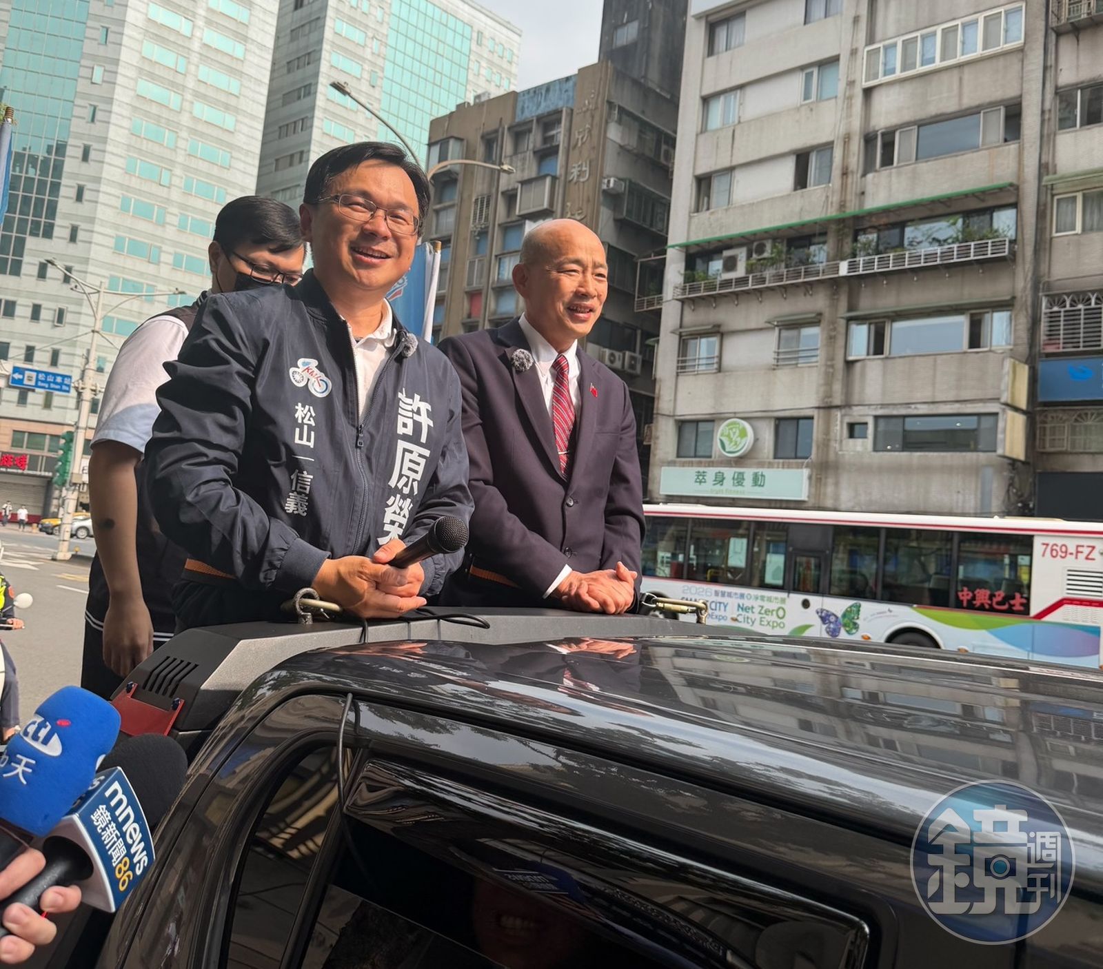 辣個男人來了!立法院長韓國瑜今(9)陪同其國會辦公室主任、投入台北市松信區議員初選的許原榮進行車隊掃街,韓不改幽默風格,大讚許原榮人如其名,「是個圓融的人」,更稱許是「大姑娘進洞房,第一次,請大家多幫忙。」這也是韓2026選舉首次替小雞站台,且是初選階段,力挺態勢溢於言表。