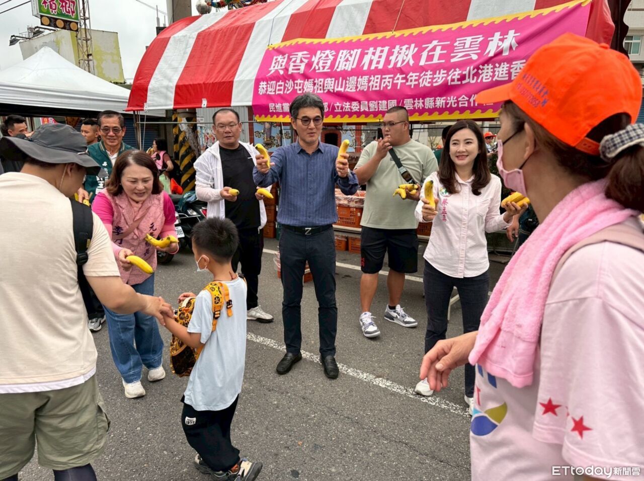 白沙屯媽祖徒步前往北港進香今(16)日進入第四天,民進黨秘書長徐國勇、立法委員劉建國,今日與雲林在地合作社及蕉農攜手,於北港進香路線設置熱血應援站。現場除了發放雲林在地優質香蕉補充體力,更特別發送「民主香燈腳」飄帶,邀請信眾一同感受媽祖慈悲,並祈求國泰民安。
