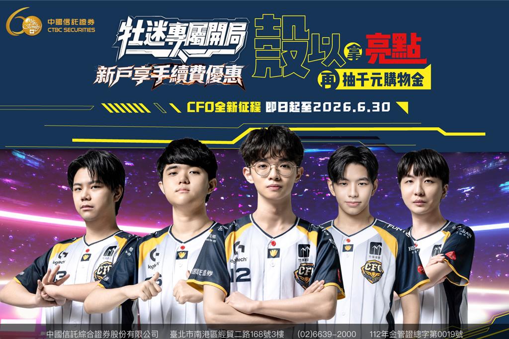 中國信託證券支持年輕世代的熱情追夢,並持續以實際行動力挺台灣電競戰隊「中信飛牡蠣(CTBC Flying Oyster, CFO)」征戰國際舞台,同時也將這股熱血精神延伸至投資理財領域,推出「CFO全新征程 牡迷專屬開局」開戶活動,邀請年輕族群逐夢同時,也能穩健踏出投資第一步。 本次活動即日起至20...