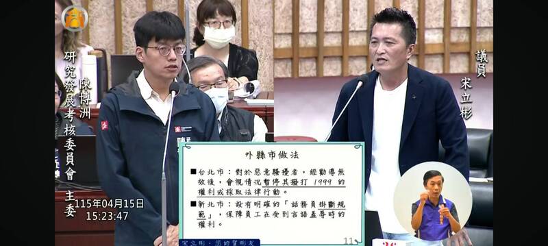 高市議員宋立彬今質詢關注1999專線服務效益,指1999常接到惡意騷擾、謾罵電話,甚至被當報復工具亂檢舉;研考會主委陳博洲答詢說明,類似無效電話每月約有700通。宋立彬指出,1999立意良好,卻遭少部分民眾濫用,動輒打去謾罵話務員,甚至把1999當報復工具,隨意檢舉他人或特定對象,還常重複檢舉,造成公務機關人力虛耗。