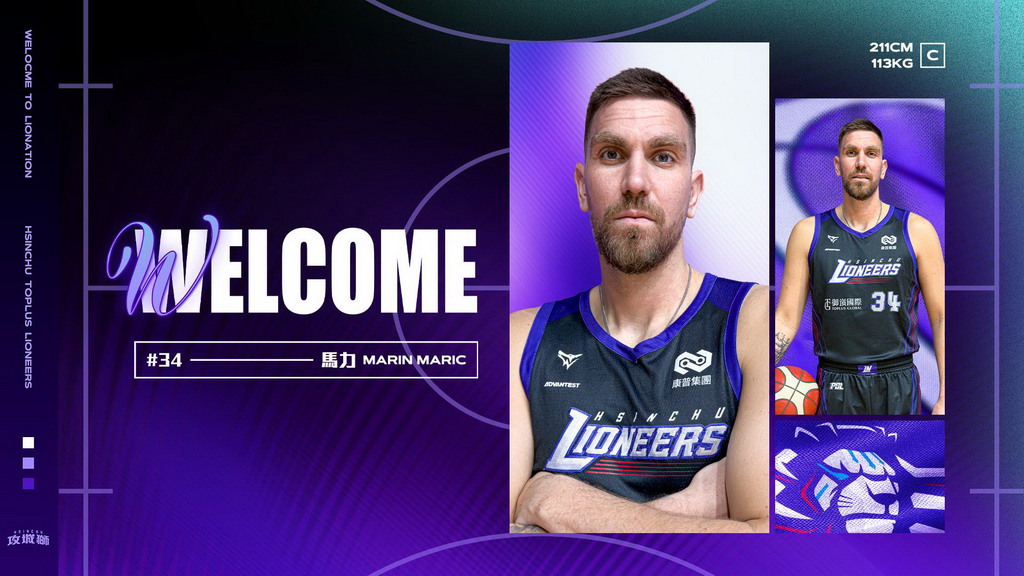 新竹御嵿攻城獅球團2日宣布洋將馬力(Marin Marić)正式加盟。馬力現年32歲,身高211公分、體重113公斤,場上位置為中鋒,他將披上34號紫色戰袍。馬力出生於克羅埃西亞,NCAA時期曾就讀美國北伊利諾伊大學與帝博大學