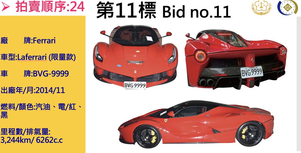 為了落實「新世代打擊詐欺策略行動綱領」,法務部行政執行署臺北分署受臺灣臺北地方檢察署囑託,今天(2日)上午,在警專舉辦「聯合打詐宣示儀式暨名車拍賣會」,更端出包含「BUGATTI山豬王」等33輛豪車33輛查扣名車公開競標拍賣,吸引逾200買家競標,但四大神獸之一的「Bugatti山豬王Chiron sport」起標價9500萬流標。