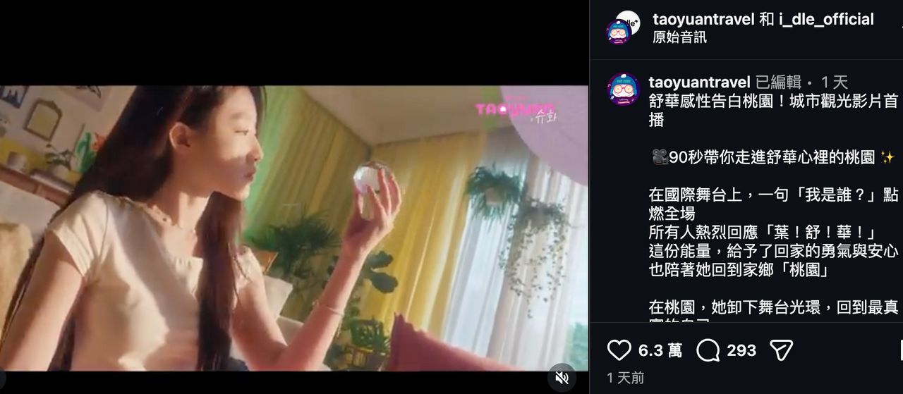 【記者張沛森/桃園報導】桃園市政府邀請 i-dle成員葉舒華擔任桃園觀光大使,觀光宣傳影片曝光後,成功掀起一波「桃園初戀」旋風,不少網友在留言區感動回應,「舒華把桃園拍得太美了,完全是初戀感」、「原來桃園這麼漂亮,想跟著舒華的腳步走一趟」、「看完立刻想訂機票飛桃園」。值得注意的是,留言區中除中文外,亦湧現大量韓文、英文等多國語言,展現舒華身為國際偶像的高度影響力。