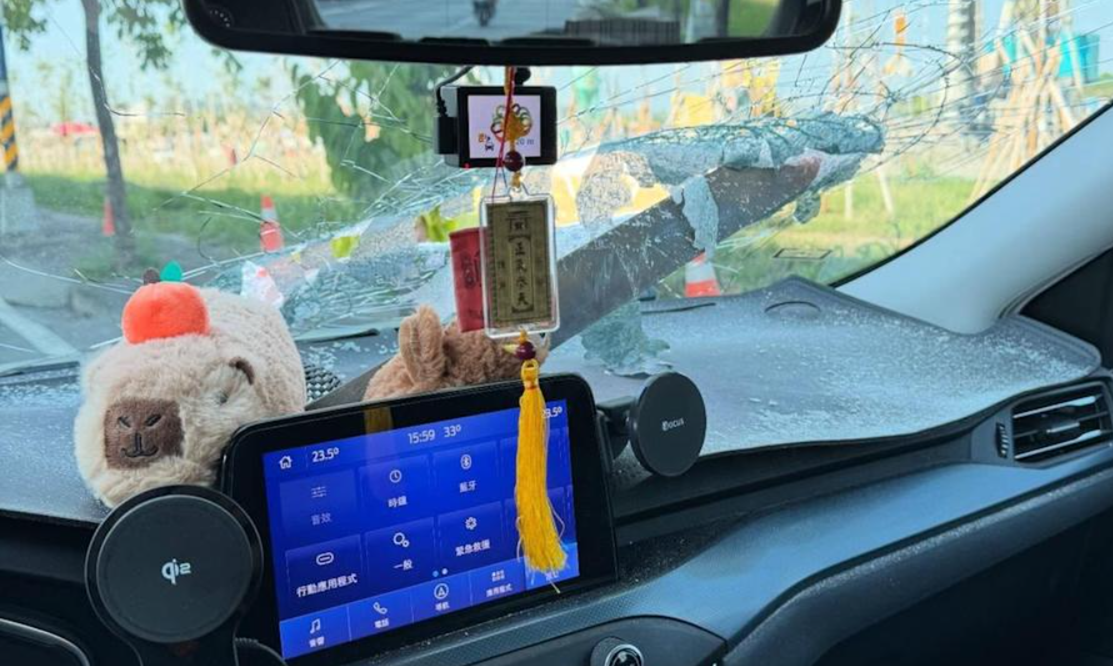 國道驚險一瞬間!一名35歲莊姓男子日前行駛國道10號仁武段,車速約119公里時,突遭前方飛來一根鐵條,當場貫穿前擋風玻璃,碎片四散車內,場面驚悚。所幸駕駛冷靜控制車輛,未釀更大事故,事後心有餘悸直呼「我幸運的活了下來」。