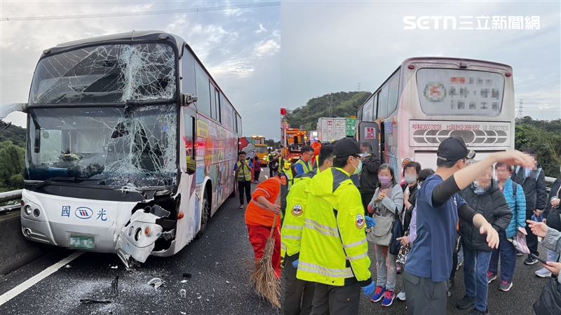 台北市松山區今(19日)13時43分許發生一起驚悚公車追撞事故,一名毛姓司機當時駕駛公車沿敦化北路北往南第二車道直行時,疑似因煞車失靈,導致其車輛失控,車前頭追撞...