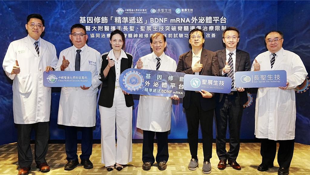 中國醫藥大學附設醫院15日宣布,攜手長聖與聖展生技開發出全球首創「mBDNF@αITG EV基因修飾外泌體平台」,可透過靜脈注射精準導航至脊髓損傷病灶並遞送治療因子,為神經修復提供非侵入式新解方,相關成果已登上Journal of Nanobiotechnology,也為後續臨床與商業化布局奠定基礎...