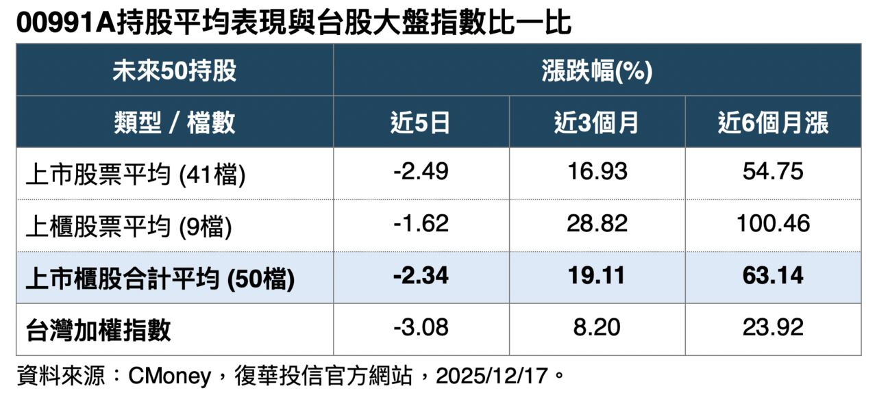 主動復華未來50(00991A)於今(18)日重磅掛牌上市,立刻在ETF市場掀起波瀾。這檔被譽為「怪物新人」的台股主動型ETF,募集期間短短三天內即募集高達108億元,刷新台股主動式ETF首次募集最高金額紀錄。掛牌當日,儘管台股大盤走勢震盪,00991A仍逆勢抗跌,單日成交量更直逼27萬張,創下主動式ETF上市首日紀錄,凸顯市場對其未來超額報酬能力的強烈看好。