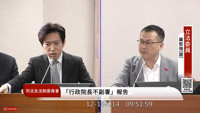 針對立法院藍白兩黨近期聯手三讀通過《財政收支劃分法》與停砍年金等案,引發行政院首度行使「不副署」權,憲政僵局持續升溫。行政院秘書長張惇涵今(18)日赴立法院備質詢時,與國民黨立委羅智強針對獨裁定義展開激烈口角,現場砲火猛烈。羅智強引述賴清德總統日前指在野黨「濫權立法」將台灣推向獨裁懸崖的談話,質疑執政黨才是真正的獨裁者,並數度追問「希特勒是在執政的時候還是在野的時候獨裁?」、「納粹屠殺猶太人,是在執政還是他在野的時候?」試圖以此諷刺賴清德的言論。