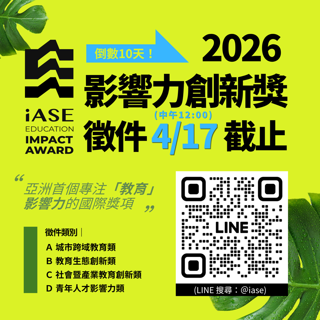在生成式AI重塑產業與治理邏輯的關鍵時刻,由雜學校攜手IASE國際永續教育協會共同主辦的「2026 IASE 影響力創新獎」,徵件計畫將於 4 月17日截止收件。本屆獎項旨在探討教育如何重新定義,並首度導入「城市教育治理」評鑑指標,將教育成效視為城市競爭力的新標準。 蘇仰志:教育是城市最關鍵的長期投...