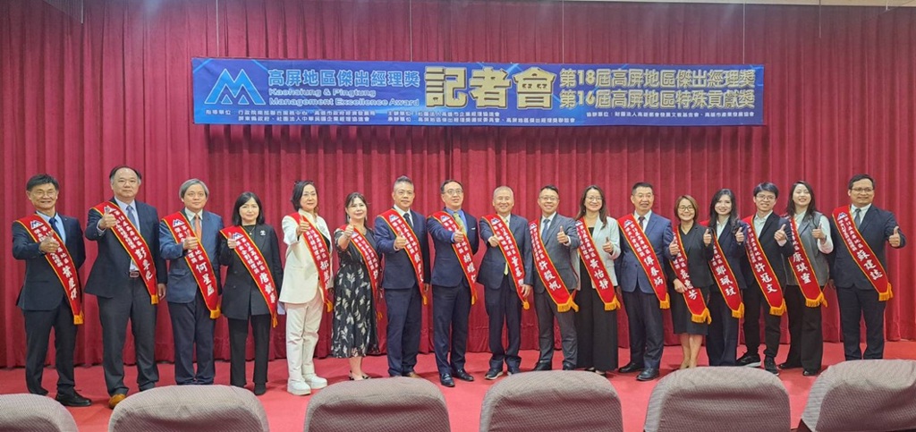 社團法人高雄市企業經理協進會主辦「第十八屆高屏地區傑出經理獎」暨「第十六屆高屏地區特殊貢獻獎」選拔,4日於高雄市議會舉行記者會揭曉當選名當,計有企劃、行銷、生產、財務、研發、人資、資訊、法務、AI智慧科技、ESG永續經營及總經理等十二大類別18位企業菁英脫穎而出榮獲傑出經理獎,金屬中心董事長劉嘉茹則...