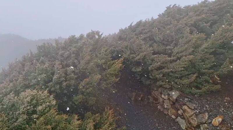 受東北季風低溫,與華南雲雨區東移影響,玉山氣象站近午11點50分突現降雪,但地面觀測氣溫4.7度,以致降雪落到地面就融化,並無積雪產生,惟氣象站可見「雪花紛飛」,配上高山區雲霧繚繞,景象美如仙境,直到12點50分降雪停止。