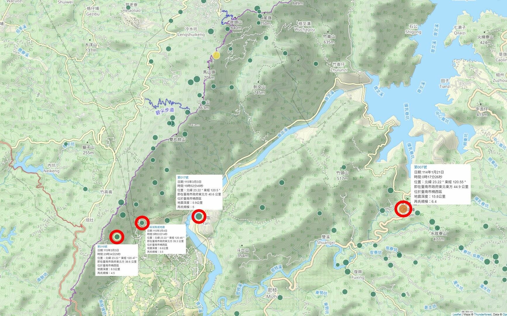 近期西部發生多起地震,昨(3)晚起台南罕見接連發生3起地震,最大規模達5。地震專家郭鎧紋表示,這是去年1月21日嘉義大埔規模6.4的餘震,震央都在方圓10公里內。不過相較於昨日台南地震,值得注意的是,花蓮至今已70天無顯著有感地震,改寫花蓮年度最晚首震的紀錄,認為這很反常。根據地震特報,台南市楠西區