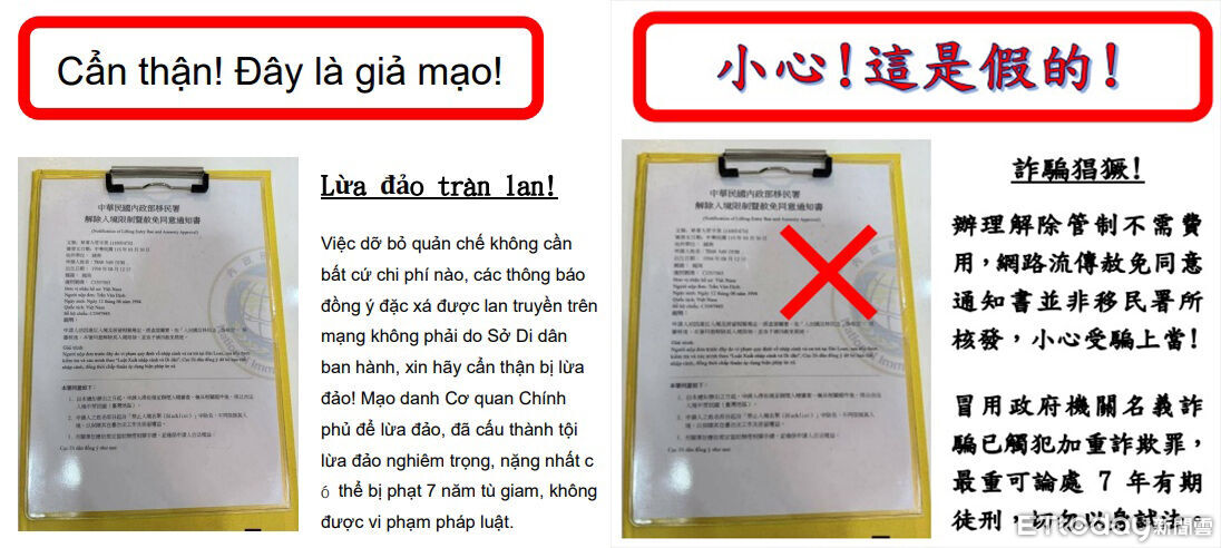 近期網路上流傳一份「中華民國內政部移民署解除入境限制暨赦免同意通知書」一事,讓不少人信以為真,紛紛致電移民署相關單位詢問。對此,移民署今天澄清,這份文件並非移民署核發,移民署研判有不肖團體假冒,想藉此來欺騙不懂行政流程的民眾來收費。移民署指出,近期網路上頻頻出現這份文件,尤其又以越南網站為多,該文件甚至還出現越南文版本。移民署研判,這份文件背後恐怕是有不肖團體,看準民眾不懂得相關行政流程,因此假冒移民署來謊稱可以辦理此類業務,想要趁機收費來詐財。