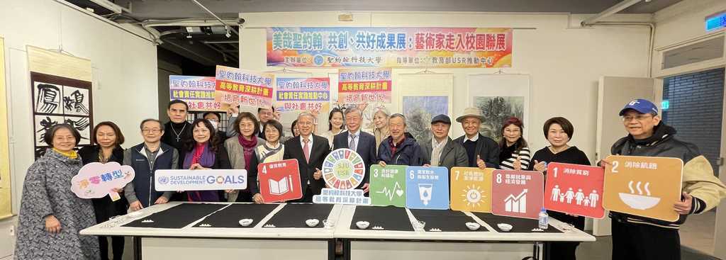 聖約翰科技大學推動大學社會責任(USR)與高教深耕計畫,在校內何兆豐數位藝文中心舉辦「美哉聖約翰・共創共好成果展—藝術家走入校園聯展」,透過藝術創作走入校園的實踐行動,展現學校結合人文藝術、教育場域與社會參與的具體成果。 本次成果展以「共創、共好」為核心理念,邀集11位藝術家共同參與,透過水墨、彩墨...
