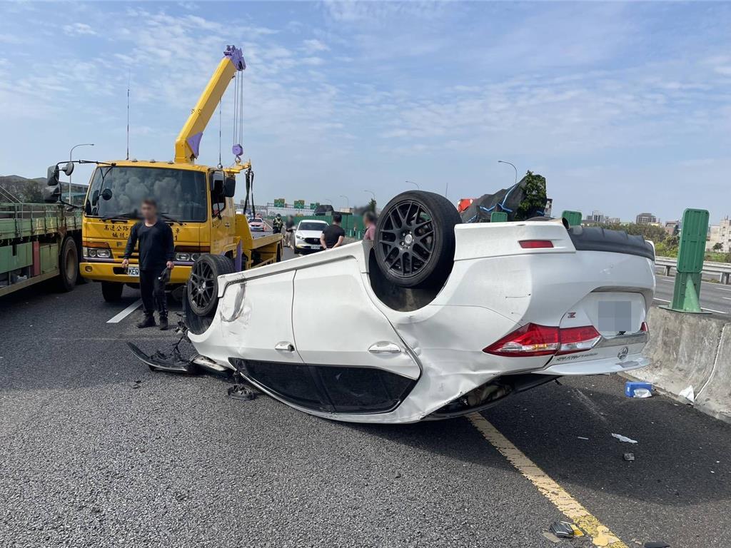國道1號北向58.3公里中壢轉接道,今日上午9時10分發生5車(1大4小)追撞事故,現場占用占用內側、中線及外側車道,且其中有小客車當場翻覆,還有另一小客車因強烈撞擊,整個車輪都消失,一度造成國1該路段沿線大塞車