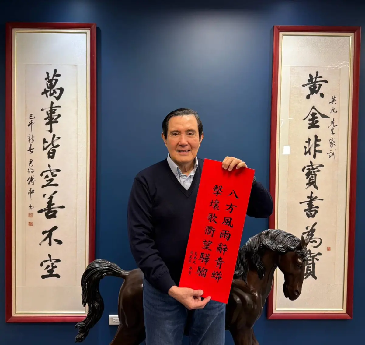 迎接馬年,前總統馬英九也一如以往,準備春聯要送給支持者。他親筆寫下,「八方風雨辭青蟒,擊壤歌衢望驊騮」,他還開玩笑說,雖然他屬虎,但馬年是他的年,「我終於等...