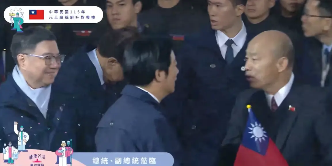 總統府升旗典禮 賴總統與韓國瑜握手致意、與鄭麗文零互動