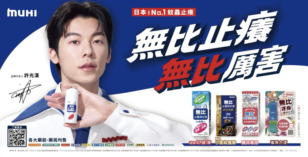 隨著氣溫升高,夏日蚊蟲大戰即將開打!日本銷售第一的蚊蟲止癢領導品牌「MUHI 無比系列」,正式宣佈 2026 年度代言人由「全民男神」許光漢接任 !