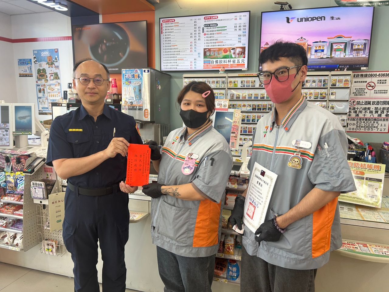 【記者凃建豐/嘉義報導】嘉義縣中埔警分局義仁聯合所員警3月27日11時許,接獲轄內統一超商隆興門市店員報案,稱有民眾疑似遭到詐騙欲購買大額點數,員警到場後與店員一同上前關懷,發現該民眾遭到假交友投資黃金詐騙,經網友介紹投資穩賺不賠的黃金投資項目,欲購買點數作為投資金,成功攔阻新臺幣20萬元。分局長吳伯元近日親自前往超商感謝店長與店員合力阻詐,共同守住民眾財產。