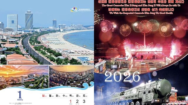 北韓(朝鮮)即將推出2026年桌曆與掛曆,最近由日媒記者曝光,整本月曆頁面刊登元山葛麻海岸的新建飯店與渡假村等觀光景點照片