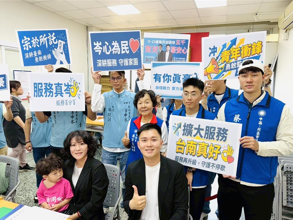 年底市議員選戰升溫,藍營布局再添話題,李中岑與蔡宗豪18日聯袂前往國民黨台南市黨部完成黨內登記,正式宣布投入下一屆市議員選舉,兩人以「1+1大於2」為合作主軸,喊出「擴大服務,台南真好」,展現跨世代結盟的選戰態勢。