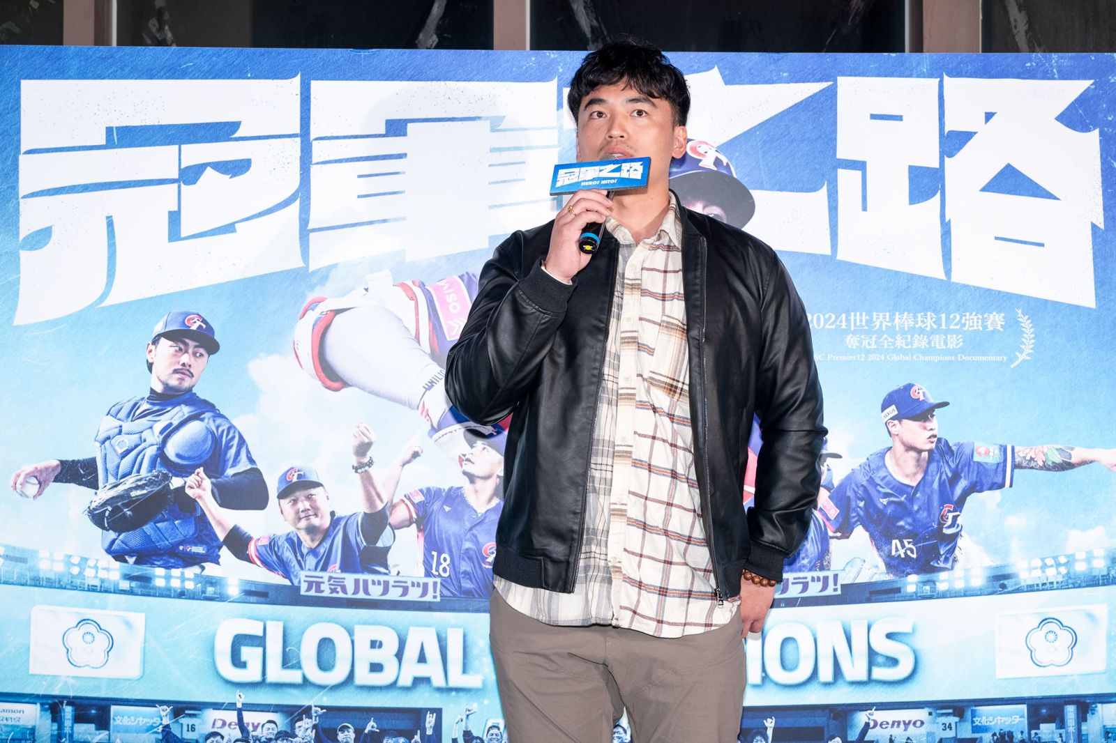 以12強賽事為題材的紀錄片《冠軍之路》昨(22日)於大直美麗華影城舉行首映,眾多貴賓到場力挺,在12強賽中上演再見雙殺,為比賽畫下句點的明星球員朱育賢也攜家帶眷進戲院觀影。朱育賢感性分享:「今天帶家人回味爸爸的過去,也告訴他們,其實他們都一直有在參與我的過程,希望他們能記住我們奪下冠軍的感動。」