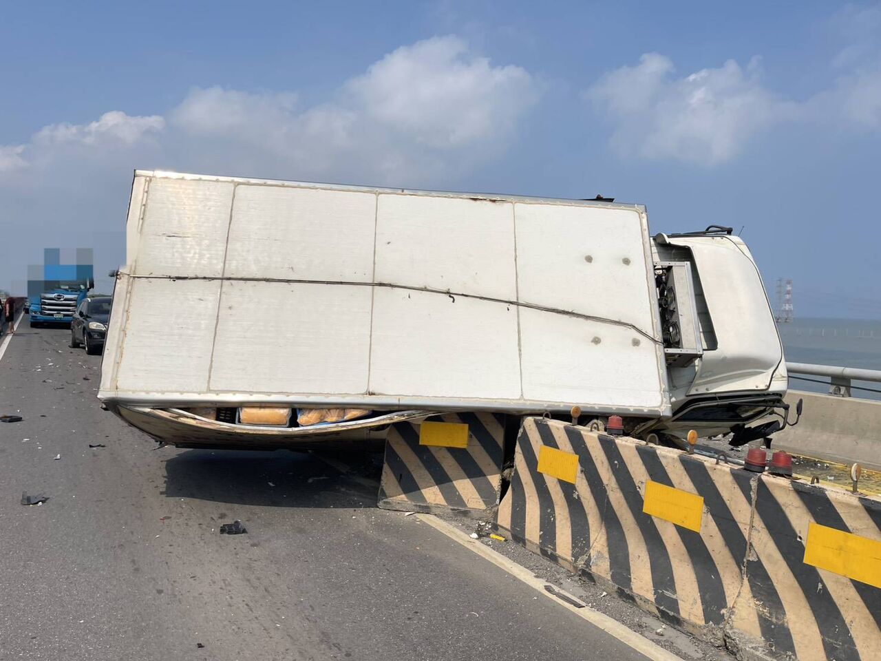 台61線西濱快速道路北上路段,今(13)日上午發生一起大貨車與自小客車的追撞意外,已知造成大貨車翻覆,卡在中央分隔道翻車。警消獲報後已緊急派員前往處理,根據初步回報,目前已知有一人受傷,回堵近3公里,救護人員正全力協助送醫。