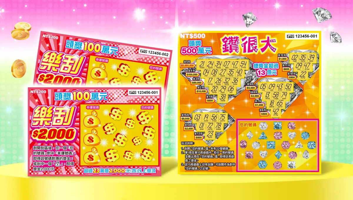開工補財庫好時機!台灣彩券公司今(24)日推出2款刮刮樂新品,總獎項超過314萬個,總獎金逾21.8億元,其中熱門益智延長型遊戲「鑽很大」頭獎500萬元共有4個,而「樂刮...