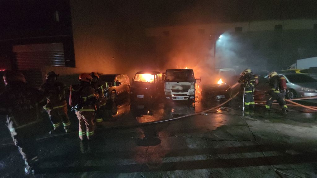 新北市五股區中興路一處停車場,今(2)日傍晚驚傳恐怖火燒車事故!一輛停放於場內的大貨車,不知何故突然起火燃燒,由於車體龐大且火勢一發不可收拾,現場瞬間陷入一片火海,滾滾黑煙直衝天際,遠在數公里外都清晰