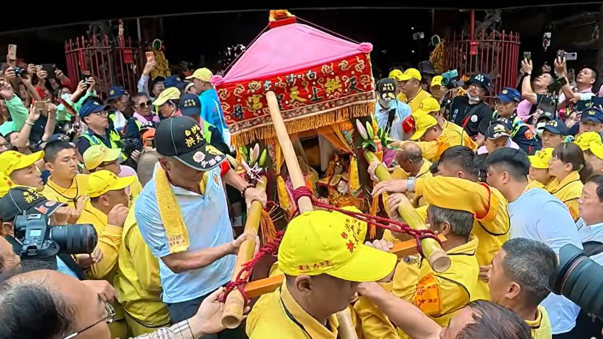 白沙屯媽祖8天7夜徒步進香進入第四天,昨(15)日上午11點左右,進到雲林縣西螺鎮,傍晚駐駕虎尾天后宮,直到今天凌晨3點起駕,上午9點20分左右,停駕北港警分局北辰派出所,形同到了近朝天宮前的最後一個停歇站,雲林縣縣長張麗善、民眾黨前主席柯文哲、民眾黨主席黃國昌都來接駕參拜,接著白沙屯媽祖的鑾轎約停駕半小時後再度起駕,在眾人的歡聲雷動中,浩浩蕩蕩三進三退,伴隨著「進喔!進喔!」的吶喊聲,於11點10分衝進北港朝天宮,數萬香燈腳相當感動。