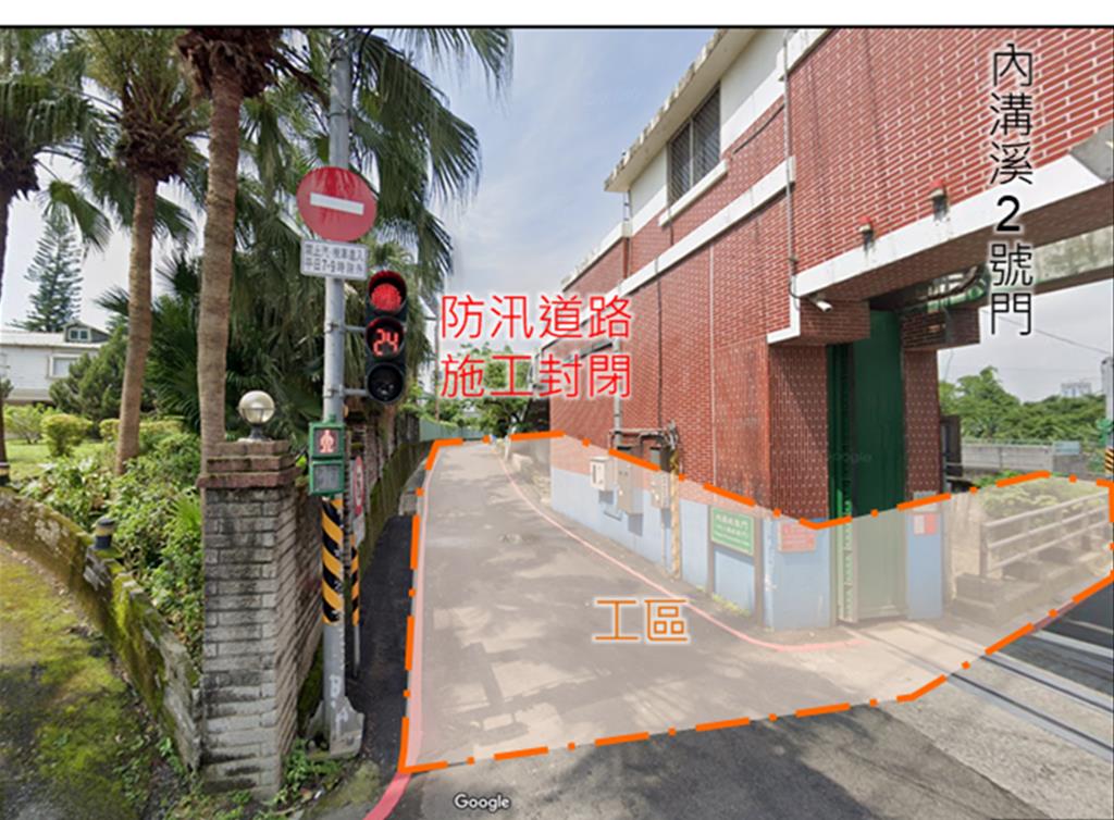 捷運汐止東湖線要徑工程內溝溪2號水門擴建工程預計自民國115年1月15日起至117年5月31日止,封閉內溝溪左岸防汛道路,封閉期間請民眾提前改道。目前該路段禁行汽車僅供機車雙向通行,相關銜接路口處將設置告示牌面並