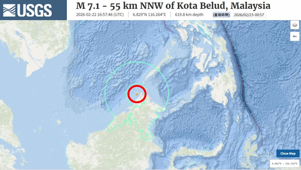 全球長達76天沒有發生規模7以上地震,今(23日)正式畫下句點,馬來西亞沙巴外海凌晨發生規模7.1地震,引發關注。前中央氣象局地震測報中心前主任郭鎧紋表示,此次強震恐代表全球地震平靜期結束;巧合的是,新北市坪