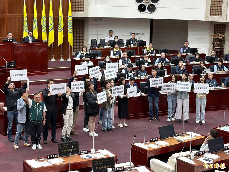 台北市長蔣萬安今天下午前往市議會進行施政報告,民進黨團車輪戰砲轟蔣萬安面對台北市人口外移嚴重,10年掉了一個大安區的人口數,卻無有效應對策略,只會大撒幣,並集體「包圍」蔣的座位,舉牌高喊「光灑幣無解方」、「蔣萬安別躺平」。林亮君表示,蔣萬安上任至今,人口持續遷出,截至去年竟達4萬4000餘人,全國最新人口數據統計,除了離島之外,台北市排名第3、本島最多,明明坐享最多的預算,蔣市長也說要給市民最好的環境,推出各種育兒補助,但有預算錯置的問題,忽略育兒環境、教保員權利。